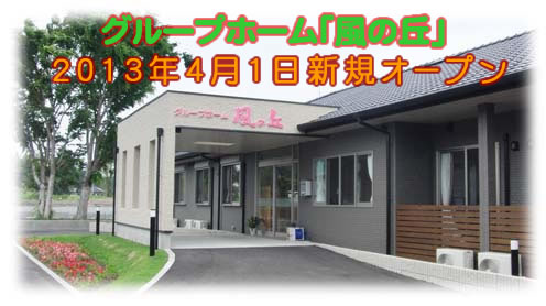 2013年4月1日住宅型有料老人ホーム《ゆうわ》《めぐみ》の近くに新たに9名ご入居いただけるグループホーム《風の丘》をオープンいたしました。入居されている皆様がプライベートを保ちながら、ご自宅でおくつろぎいただけるような、和気あいあいとした環境の中でおくつろぎいただけるようスタッフ一同お世話をさせていただいております。